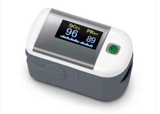 Oxygen saturation (SpO2 %) and heart rate (pulse) can be displayed as bars or waves